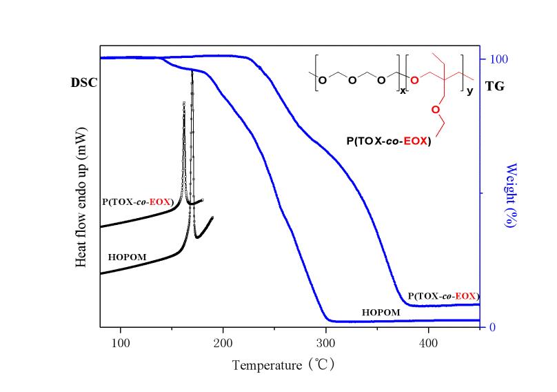 P(TOX-co-EOX)与均聚甲醛(HOPOM)的DSC及TGA曲线