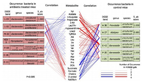 粪样中代谢物与肠道菌群关联图(p < 0.005)