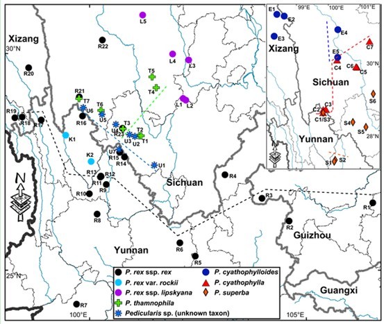 上述研究结果以Incongruence between Nuclear and Chloroplast DNA Phylogenies in Pedicularis Section Cyathophora (Orobanchaceae) 为题于9月19日发表在PLoS ONE 上。