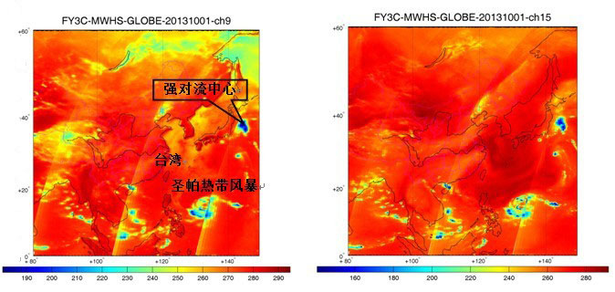 图一:2013年10月1日:FY-3C星微波湿度计探测到“圣帕”热带风暴