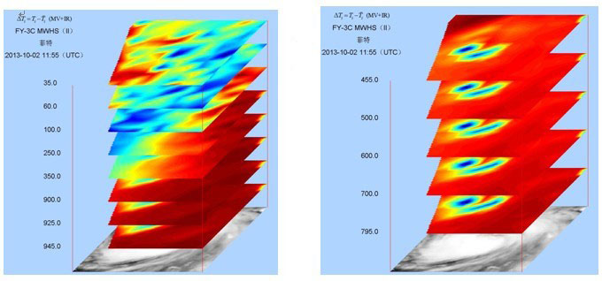 风云三号A、B、C星微波湿度计在“圣帕”、“菲特”台风监测中大显身手,监测到热带风暴、台风的发展路径,以及登陆我国东南沿海的过程。