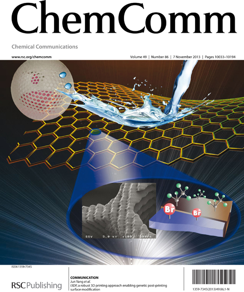 该研究的主要参与者王晓龙博士得到了中国科学院公派留学项目的支持。研究结果发表在近期Chem.Commun.(2013,49,10064),被选为封面文章,并被Chemistry World 作为研究亮点进行了报道。