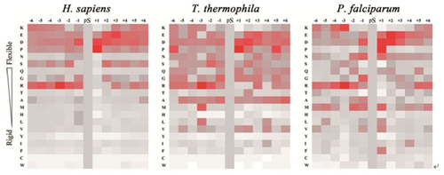 嗜热四膜虫(T. thermophila)磷酸化修饰位点特征与人类(H. sapiens)及恶性疟原虫(P. faciparum)的比较