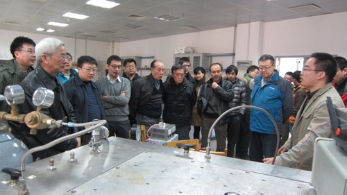 该制冷机利用多级高频脉冲管制冷机预冷J-T节流制冷机复合制冷的方式,在总功率473W的输入下,在4.49K获得了5.2mW的制冷量。这是国内首次实现高频脉冲管制冷机与J-T节流制冷机的耦合,该样机的研制成功为我国未来的空间望远镜、宇宙微波背景辐射探测卫星等空间科学研究项目的发展奠定了技术基础。会后专家组一行参观了空间功热转换技术重点实验室。
