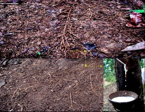 橡胶树遍布地表的根尖、纵横盘结的须根、源源不断的胶乳