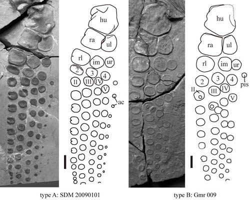 图2 邓氏萨斯特鱼龙的两种前肢类型(尚庆华供图)