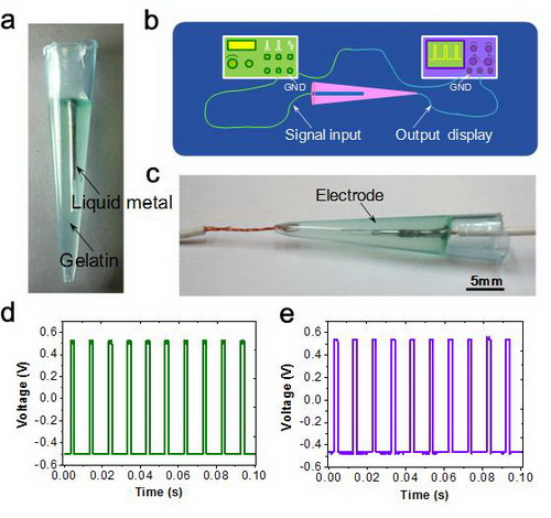 封装于固化成型的透明介质中的液态金属电极及其性能试验