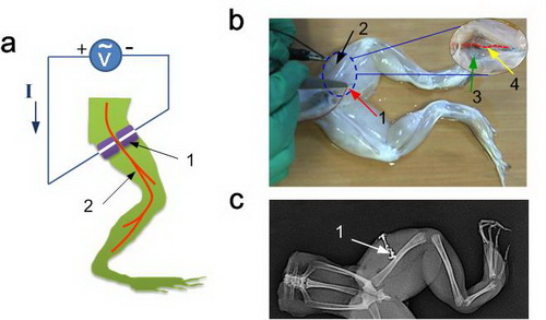 基于注射的液态金属电极对牛蛙腿中坐骨神经进行刺激