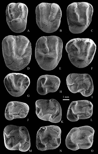 图1 道氏亚洲鼠上、下颊齿冠面视(李茜供图)