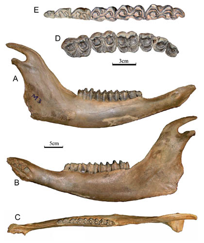 图2 草原野牛(Bison priscus)下颌骨及颊齿列