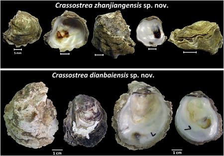 近日,中科院南海海洋研究所研究员喻子牛等在华南沿海发现了巨砺属(Crassostrea)两个牡蛎未定种,通过与近缘属种的形态学比较,结合线粒体16S和cox1基因序列及其基因组分析,确定是新发现种,分别命名为湛江牡蛎(Crassostrea zhanjiangensis sp. nov.)和电白牡蛎(C. dianbaiensis sp. nov.)。