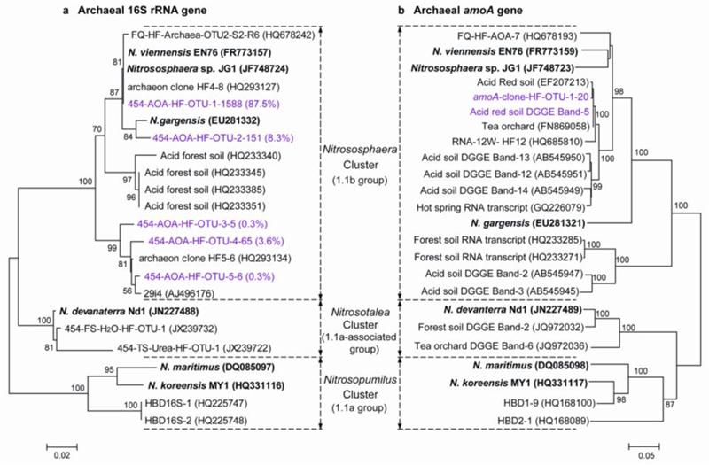 酸性土壤中活性氨氧化古菌与碱性土壤古菌的系统发育亲缘关系最近