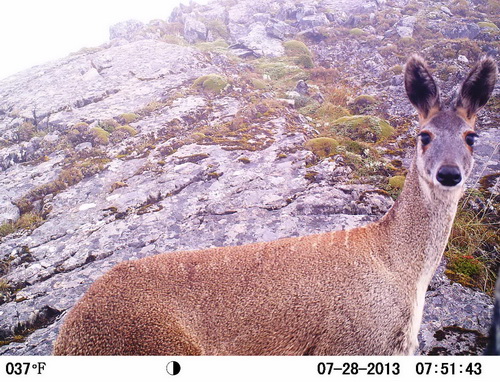 另外,该研究还采用拍摄率分析了4种有蹄类动物栖息地利用的时空格局,表明自动感应照相系统可以用来研究高山林栖动物的栖息地利用。与传统方法相比,红外相机技术在野生动物调查与监测中不受地形、气候及时间的限制,可24小时不间断地记录野生动物出现信息,具有准确、高效、省时、省力等特点,不失为高山峡谷地区野生动物调查与监测的一种快捷而简便的方法。