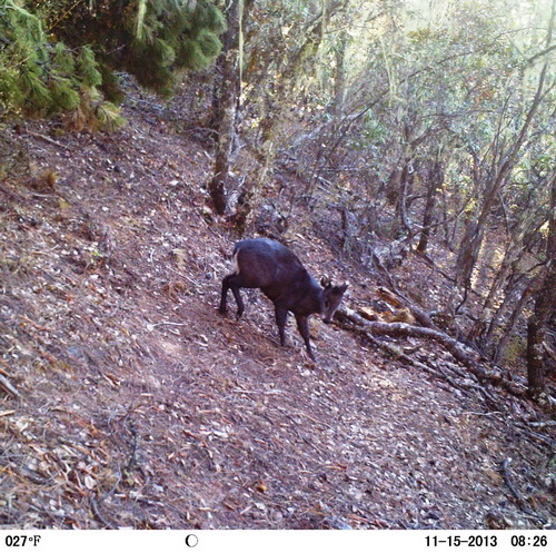 行之有效的野生动物种群现状调查和监测,对于濒危物种保护和生物多样性及管理成效评估至关重要。横断山脉纵贯的滇西北地区,地形地貌复杂多样,坡陡谷深,沟壑纵横,为典型的高山峡谷地貌。特殊的地形和气候条件增加了野外调查的难度,加之偶蹄类野生种群行踪隐蔽、密度低等特点,传统的调查方法(如:样线法)较难获得动物的丰富度和分布等信息。