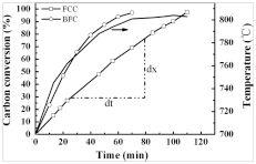图2. FCC与BFC催化剂上焦炭气化碳转化率
