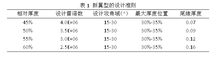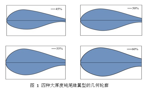 厚翼型采取钝尾缘设计可以有效改进其气动性能和结构强度,Timmer, Hoerner, van Dam等人对此做了大量的研究,包括厚尾缘的造型方法以及尾缘钝化后的效果。但目前厚翼型的设计准则不能贴近多兆瓦级风力机的运行需求,也缺乏可用的大厚度钝尾缘翼型族。