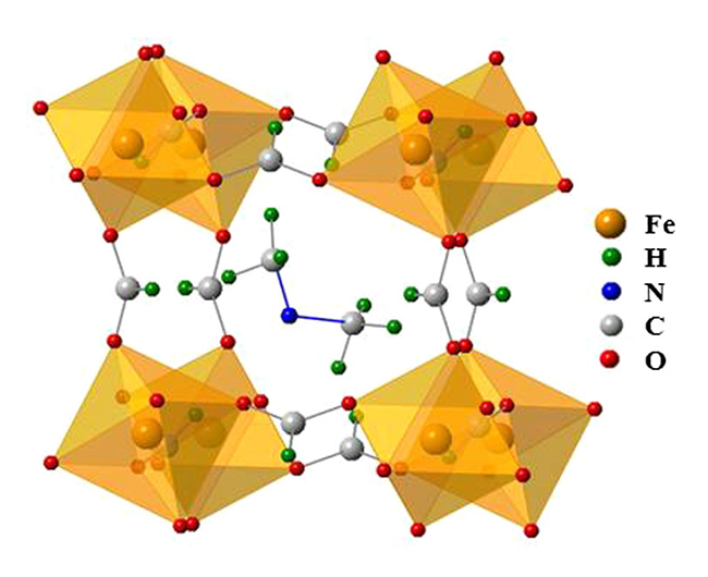 图1. 金属-有机骨架[(CH3)2NH2]Fe(HCOO)3的晶体结构。