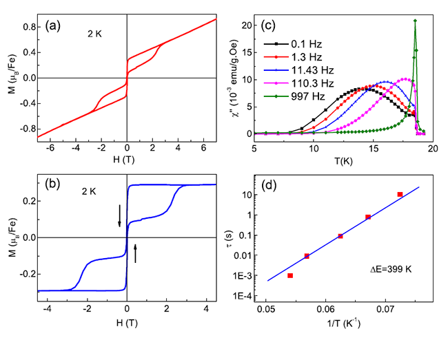 金属-有机骨架(Metal-Organic Framework,MOF)是指金属离子与有机官能团通过共价键或离子-共价键相互连接,共同构筑的长程有序晶态结构。这类MOF材料因在催化、储氢和光学元件等方面具有潜在的应用价值而受到广泛关注,是近十年来化学和材料科学领域的一个研究热点。最近几年,金属-有机骨架材料的磁性和电学性质开始引起人们的兴趣,人们先后在一些金属-有机骨架材料中发现了新型有机磁体、有机铁电体和多铁体等。近期,中科院物理研究所/北京凝聚态物理国家实验室(筹)磁学国家重点实验室孙阳研究组在金属-有机骨架材料的磁性研究方面取得了新进展,发现一种铁基金属-有机骨架材料在低温下表现出磁化强度共振量子隧穿行为。