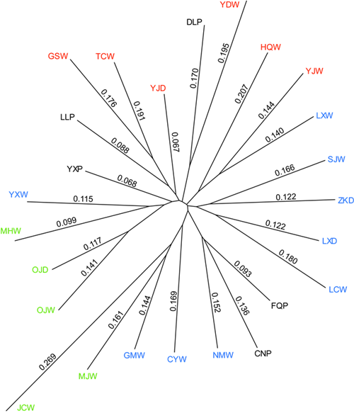 图2 栽培居群的世系分析