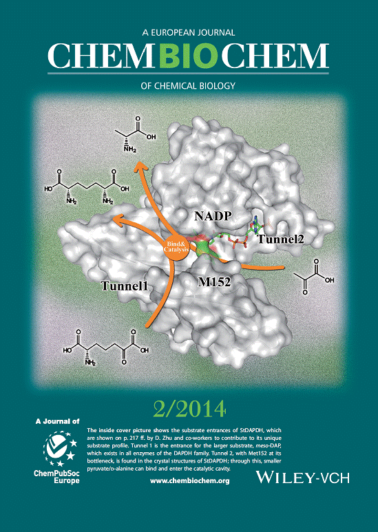 研究成果已经在Applied and Environmental Microbiology (2篇)和 ChemBioChem发表,其中ChemBioChem 文章被选为Inside Cover文章。该研究获得国家自然科学基金(21072151)和973项目(2011CB710801)的支持。