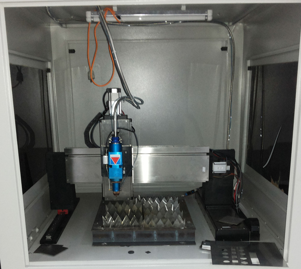 激光切割主要是采用激光束照射到金属工件表面时瞬间释放的高能量来使工件熔化并蒸发,达到切割的目的。它属于非接触式加工,相比传统的加工方式具有加工速度快、精度高、不产生废料、无刀具磨损等优点。以往都是采用CO2激光器和光纤激光器进行切割,这些激光器电光转换效率低、运行成本高,不符合国家节能减排的要求。半导体激光器具有电光转换效率高、寿命长、体积小等优点,随着近年来中科院长春光机所大功率半导体激光组对基础器件封装以及光束整形、光纤耦合等关键技术的攻关,高光束质量半导体激光切割光源的研制有了突破性的进展,已经达到工业化应用水平。