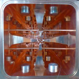 162.5MHz/2.1MeV RFQ是用于ADS质子加速器注入器II的原型机,输出能量2.1MeV,设计流强15mA,频率162.5MHz,截面425mm×425mm,总长度4.2m。由近代物理所和洛伦兹伯克利实验室合作设计,在科近泰基公司和近代物理所完成加工、焊接、真空检漏、高频加速电场测试和整体组装。