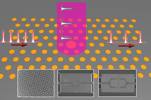 光子晶体具有光子带隙和光子局域等物理特性,可用来增强光和物质的非线性相互作用,比如慢光效应、谐振腔共振效应等。克尔非线性光子晶体中包含有克尔非线性材料,集合了克尔效应和光子晶体效应双重优势,是实现微纳尺度超快全光开关的一条重要途径。在外界强超快脉冲激光的泵浦作用下,克尔材料的折射率发生超快变化和调制,使得光子带边或者缺陷态瞬时移动。如果探测光的波长设置在带边或者缺陷态的位置,其透射率在泵浦前后会发生显著的变化,从而实现超快的全光开关。