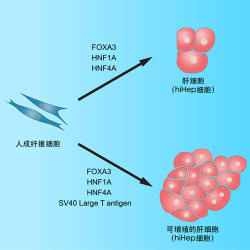 中国科学院上海生命科学研究院生物化学与细胞生物学研究所惠利健研究组最新研究发现,通过表达三个肝脏转录因子,可成功将人体皮肤细胞转变为肝细胞。这项获得人类肝细胞的方法,向最终实现肝细胞治疗、生物人工肝等领域前进了一大步。2月28日,国际学术期刊《细胞干细胞》(Cell Stem Cell)在线发表了这一研究成果。