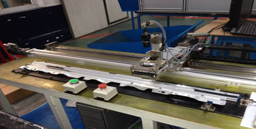 鉴于此,敏实集团汽车零部件检测部门与中国科学院宁波材料技术与工程研究所所属二级所先进制造所计算机视觉与虚拟制造团队联合,打造基于计算机视觉的非接触式高精度大型汽车零部件检测系统,敏实集团负责硬件采购搭建,视觉团队负责软件和整套系统开发。该系统的主要技术要求导轨部件的高精度视觉测量算法精度达到0.05毫米以内,最长检测距离达到1000毫米以上,系统的部件测量速度达到1个/120秒以上;具有操作友好的用户界面,能在XP和WIN7 32位操作系统环境中运行,能进行数据转换和后续处理功能;程序开发以某汽车天窗导轨的资料进行编写,输出的结果也以某汽车的天窗导轨的技术要求为准。