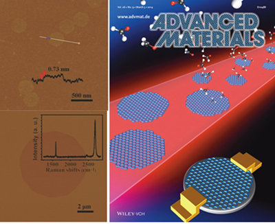 图1 单晶石墨烯AFM照片(左)和《先进材料》内封底(右)