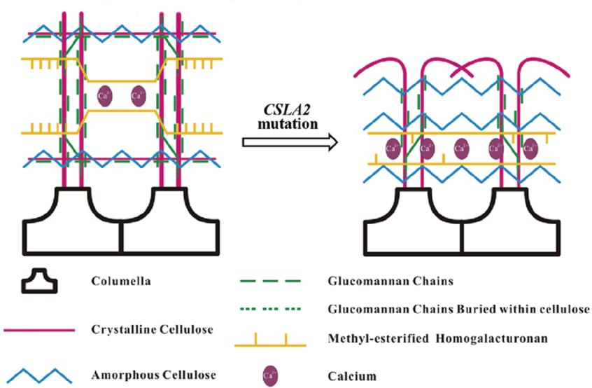 种子粘液质被认为是研究植物细胞壁多糖生物合成及其调控机制的理想模式体系。甘露聚糖作为细胞壁组分之一,与纤维素、半纤维素和果胶互相交联共同维持细胞壁的稳定性与完整性,并在植物生长发育中发挥着重要作用。