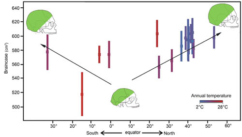 中国科学院古脊椎动物与古人类研究所研究生潘雷等对世界主要人群头面部表面积的纬度分布特点及其与温度的关系研究取得新进展,该项成果3月18日在线发表在《中国科学:地球科学(英文版)》上。