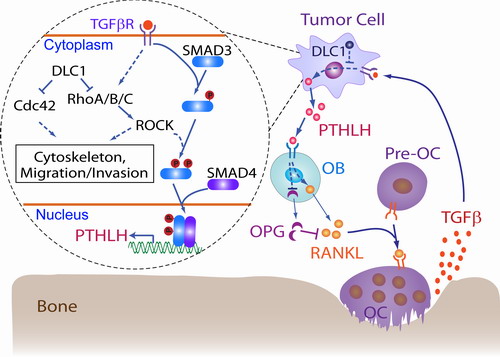 A schematic presentation of DLC1 function in breast cancer bone metastasis