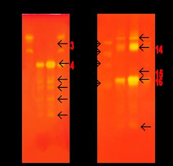 图1 木聚糖酶(右)和内切纤维素酶(左)活性染色图谱。1.菌株CS-3-2上清;2.菌株CS-4-4上清;3.共培养体系上清;4.量菌株上清的混合(1:1)。