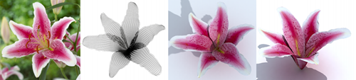 图3 基于单幅图片的三维花朵重建(EUROGRAPHICS 2014)