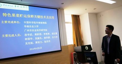 4月17日,广东省科技厅主持召开了由中国科学院华南植物园等单位完成的“南方特色果蔬的贮运保鲜机制与关键技术”成果鉴定会。鉴定委员会成员来自广东省农业科学院、仲恺农业工程学院、广东省微生物研究所、暨南大学等高校和科研院所,广东省农科院农业生物技术研究所所长张名位研究员担任主任。中科院广州分院副处长周小云,华南植物园副主任傅声雷、副主任蒋跃明,科研处负责人郑祥慈、陈峰及项目组科研人员30余人参加了会议。