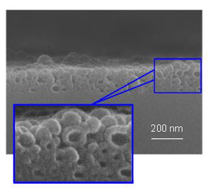 (左)具有封闭孔隙结构的减反膜截面照片(右)防雾自清洁特性