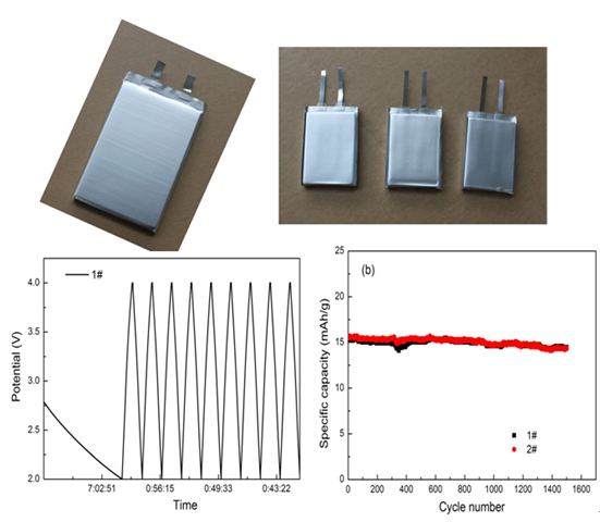 研制出的锂离子电容器器件及其充放电和循环寿命曲线