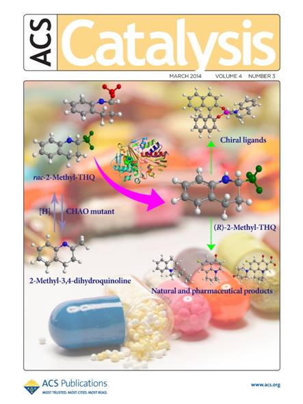 研究成果以论文形式在Applied Microbiology and Biotechnology(第一作者为:博士研究生李广悦)和ACS catalysis(博士研究生李广悦和任杰为并列第一作者)上发表,其中发表在ACS catalysis 上的论文被选为封面文章。
