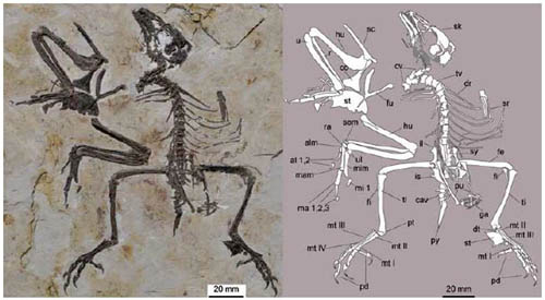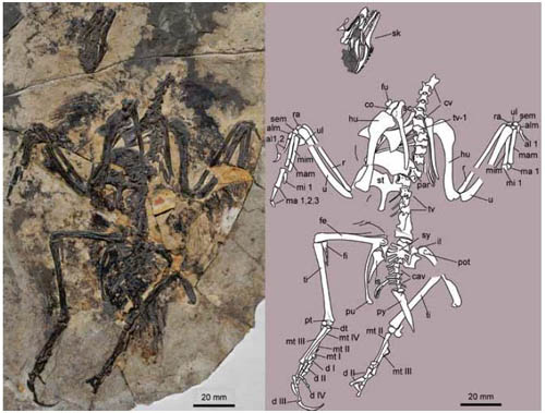 据研究人员介绍,这两个新属种与此前报道的渤海鸟(Bohaiornis)、神七鸟(Shenqiornis)、齿槽鸟(Sulcavis)和周鸟(Zhouornis)具有一些独特的形态特征,包括吻端粗壮、牙齿粗大并近似锥形、叉骨上升支的末端明显膨大、胸骨的后外侧突向外侧强烈偏转、跗蹠骨粗短、第三脚趾具有很长的爪子。