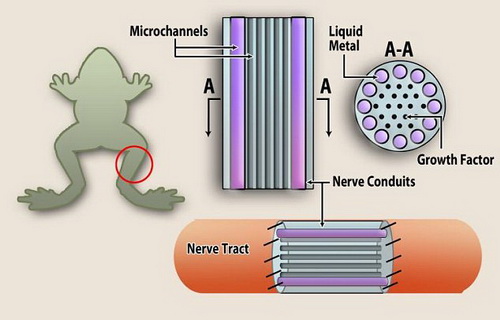 由液态金属构成的神经连接与修复导管示意图