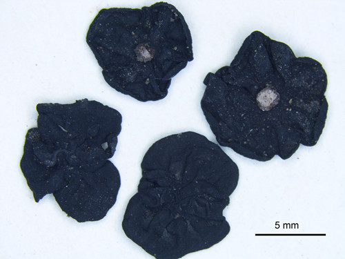 由于之前没有地衣学家对金沙江干热河谷地衣进行系统的考察和标本采集,因而该区域地衣物种的特殊性也鲜为人知。链衣属在中国曾报道两种,考察中发现了该属疑似新种(Thyrea sp.),与之前报道的两个种不同之处在于:该标本地衣体呈圆形,表面光滑无裂芽,下表面中央具脐固着基物,附生于岩石表面。考察中还发现与链衣相似的属Lichinella ,此属在中国未有报道,为中国新记录属,二者共生藻相同,但子囊盘特征不同,前者埋生于地衣体中,后者在地衣体表面密生形成小疣,且后者衣体上表面无粉霜。这些具有神秘色彩的地衣物种,或许还来不及被人类认识,就要随着电站的建成而走向灭绝了。