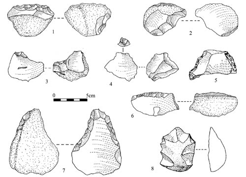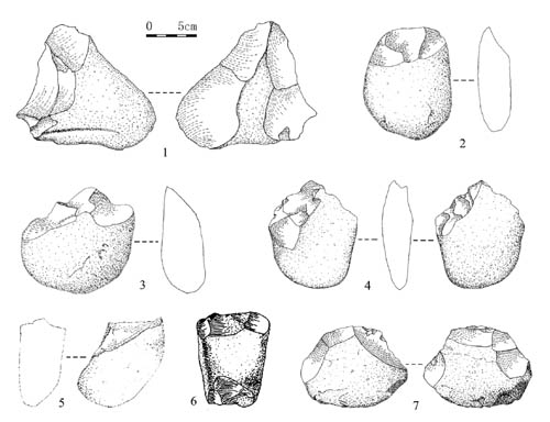 图1 高岭坡旧石器遗址的部分石核和砍砸器