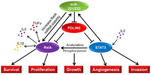 6月12日,国际胃肠病学期刊Gastroenterology 在线发表了中国科学院上海生命科学研究院/上海交通大学医学院健康科学研究所张笑人研究组的最新研究成果:A microRNA 221- and 222-mediated feedback loop, via PDLIM2, maintains constitutive activation of NFκB and STAT3 in colorectal cancer cells,揭示miR-221/22介导的炎症信号正反馈环路在结直肠癌发生和发展过程中的重要作用。