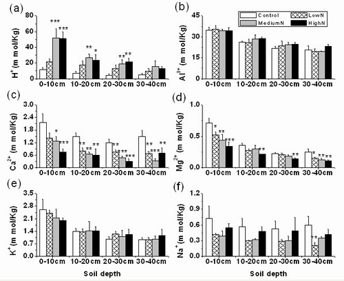 图2 长期氮沉降增加对中国南亚热带成熟林土壤可交换阳离子的影响