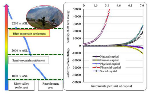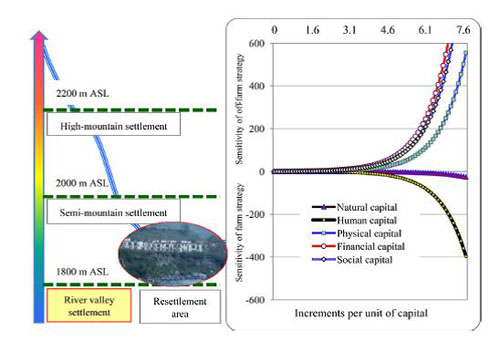 中国科学院水利部成都山地灾害与环境研究所方一平研究员与中科院地理资源所樊杰研究员等对山区聚落生计策略与生计资本的关系及其敏感性进行了系统研究。结果表明:尽管不同资本对农户生计策略的作用不同,自然资本、人力资本对农户农业生计决策具有显著的正向影响。物质资本的影响相对比较复杂,显著性水平较低,仅高山聚落的物质资本对农户非农生计决策呈正向影响。金融资本和社会资本无疑是农户非农生计决策的重要驱动因素和催化剂,对四类农户的非农决策均表现为正效应,但就敏感性而言,自然资本对农业生计决策的敏感性由高到低分别是半山、搬迁、高山和河谷聚落;人力资本对农业生计决策的敏感性由大到小依次为河谷、高山、半山和搬迁聚落;高山、河谷、半山、搬迁聚落金融资本对农户非农生计决策的敏感性依次降低;虽然社会资本的增加将提高农户非农决策的可能性,但显著性水平相对较低。