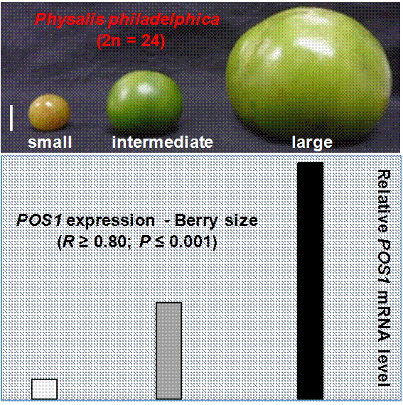 Physalis philadelphica浆果大小与POS1表达呈显著正相关