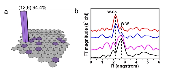 (a)拉曼光谱测得的(12,6)碳管含量;(b)WCo催化剂结构的EXAFS表征。