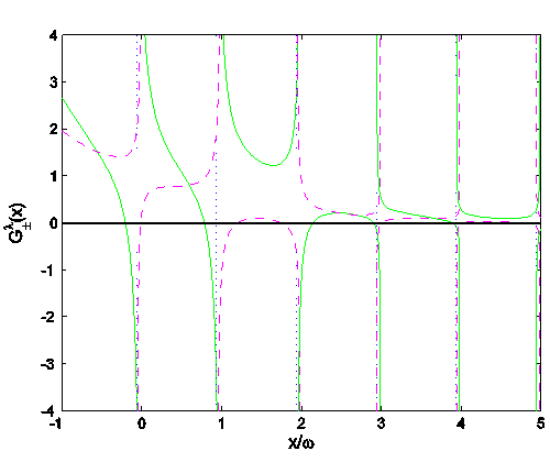 图1. 模型可以通过构造超越函数G来求解,函数的单纯零点对应能谱的正规解,而能谱非正规解由函数零点和极点的互消而得到。