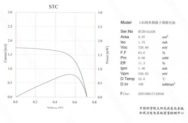 日前,中国科学院电工研究所化合物薄膜太阳能电池研究组在普通钠钙玻璃上制备的铁电-半导体耦合光伏器件,经中国科学院太阳光伏发电系统和风力发电系统质量检测中心认证,其转化效率达到11.3%。
